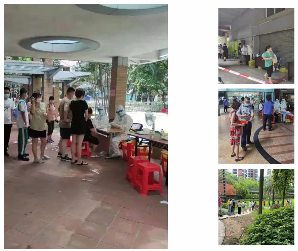 金铭物业各服务中心全员出动,全力协助各级单位开展大规模核酸检测工作,无惧烈日炎炎,无惧雷电暴雨,全力保障防疫阵线。