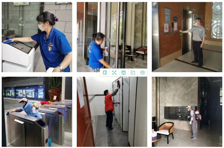 各服务中心加强园区消毒消杀工作,不放过每一个死角。对园区所有岗亭、单元大堂、电梯轿厢、生活垃圾投放点等业主活动的重点部位开展不少于一次的消杀工作。并对电梯按钮、门把手、楼梯扶手等重点细节处的额外消杀,为业主们营造一个安心的居住环境,保障业主的健康。
