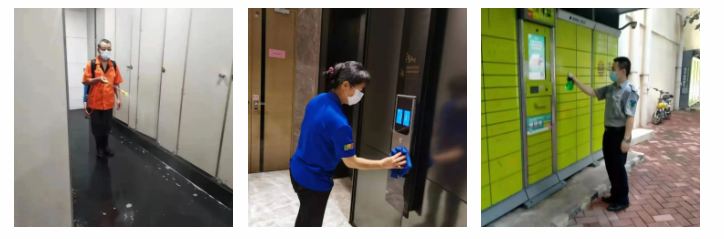 各服务中心加强园区消毒消杀工作,不放过每一个死角。对园区所有岗亭、单元大堂、电梯轿厢、生活垃圾投放点等业主活动的重点部位开展不少于一次的消杀工作。并对电梯按钮、门把手、楼梯扶手等重点细节处的额外消杀,为业主们营造一个安心的居住环境,保障业主的健康。